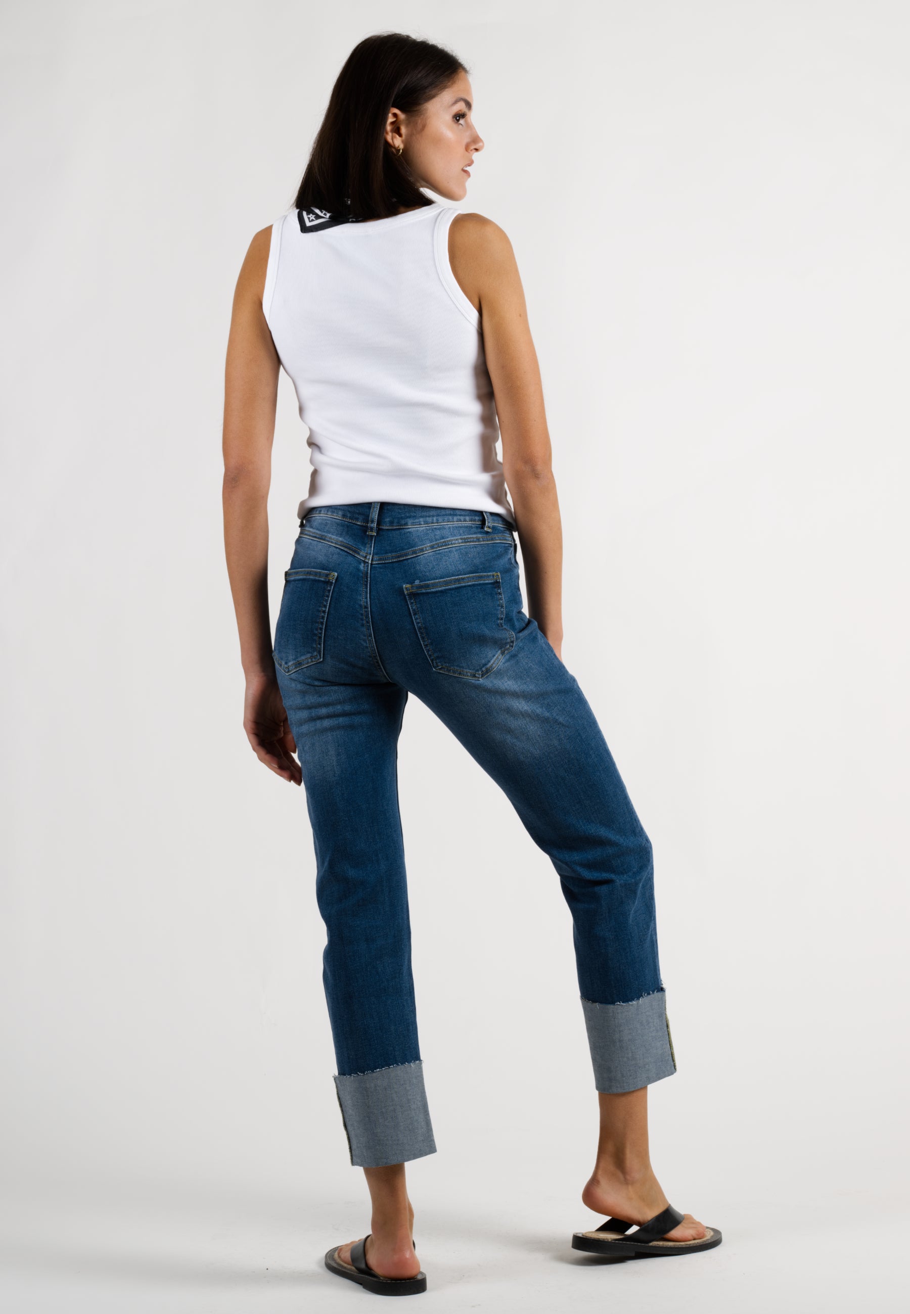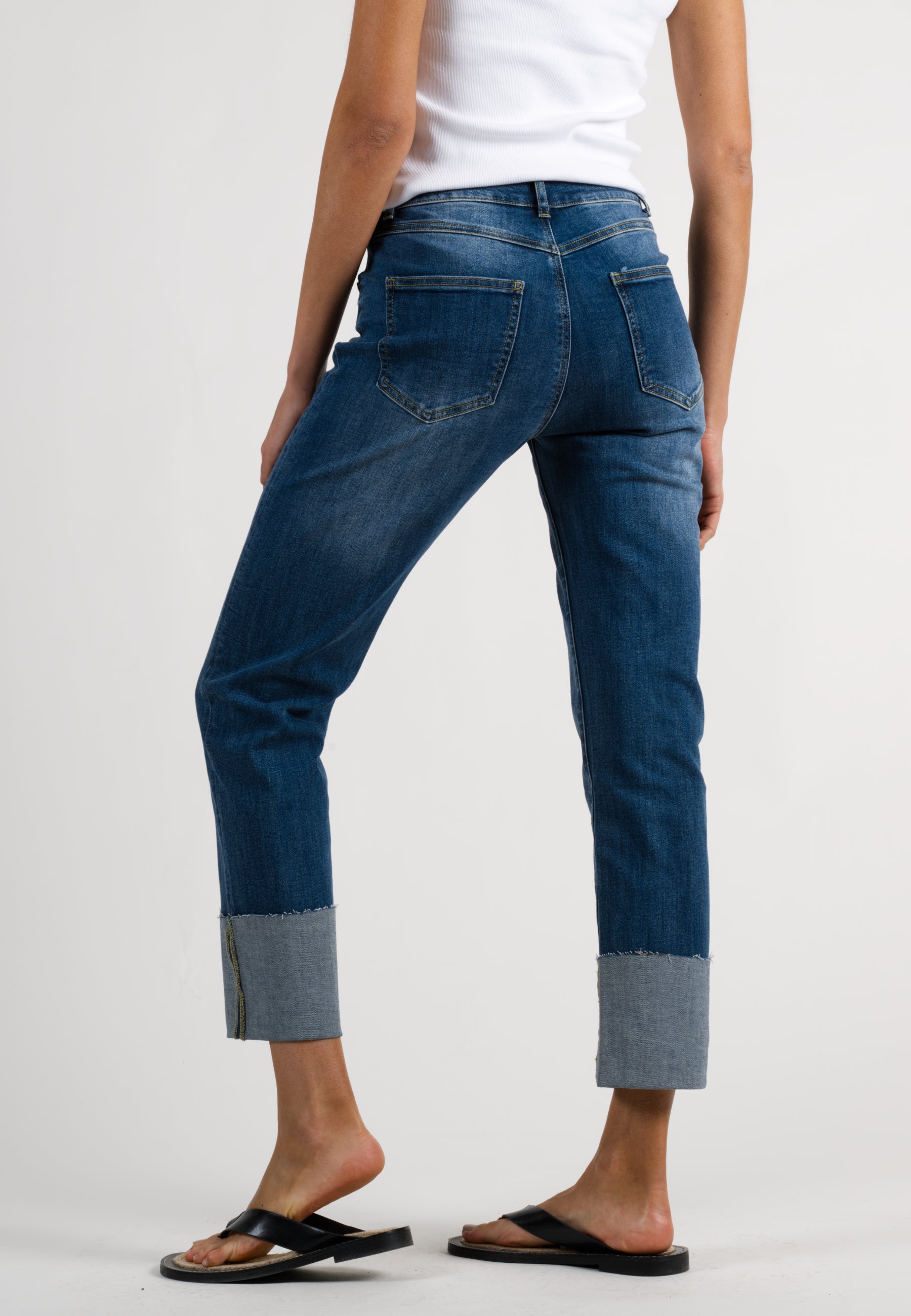 - Straight Fit – gerade, schmeichelnde Passform mit mittelhohem Bund